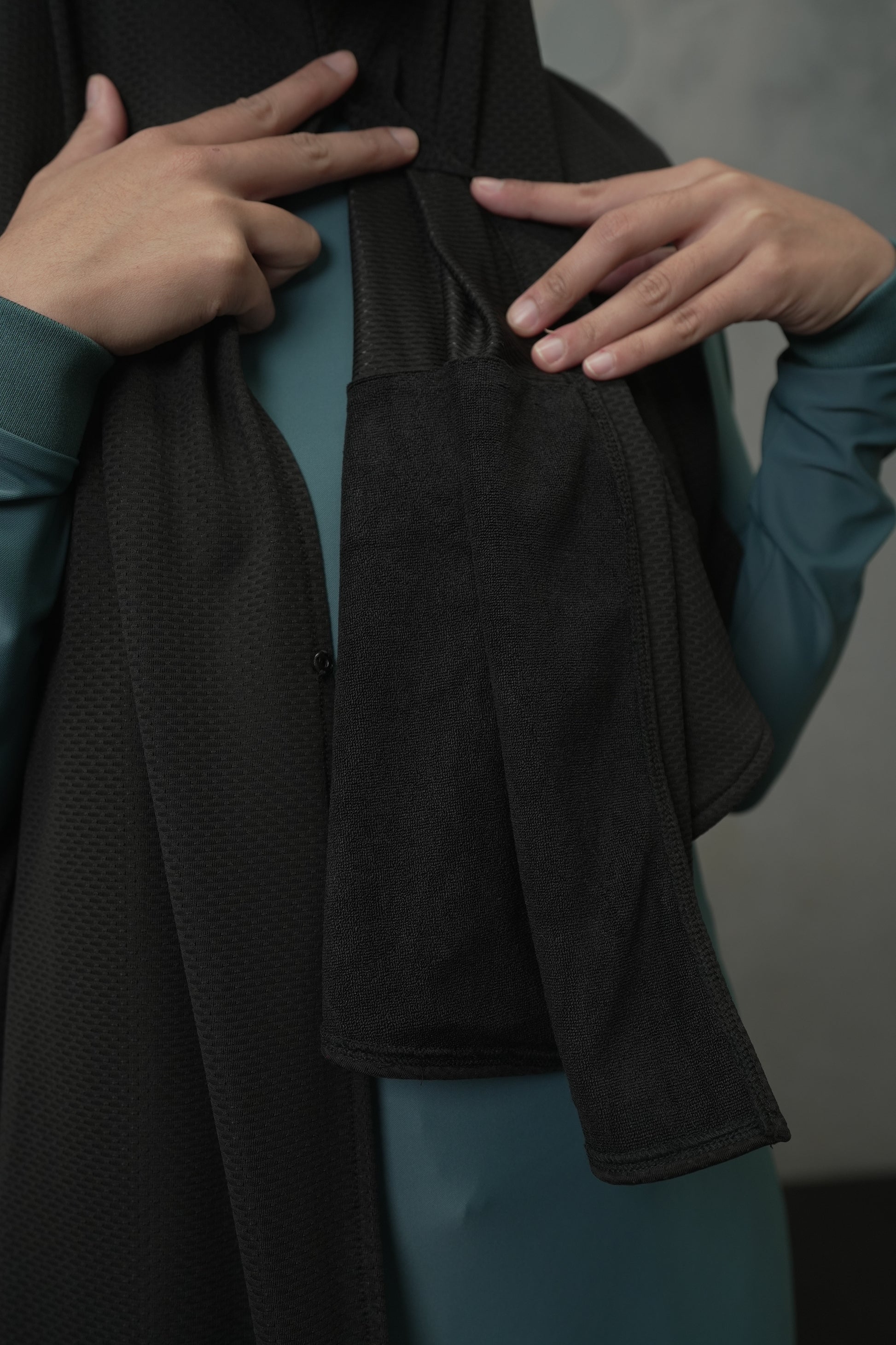 Our Training Scarf - but with a little something extra. The Touch Up Training Scarf features a hidden absorbent towel so you have a clean towel to touch up facial sweat with, instead of relying on your gym one that ends up touching equipment and sometimes the floor.