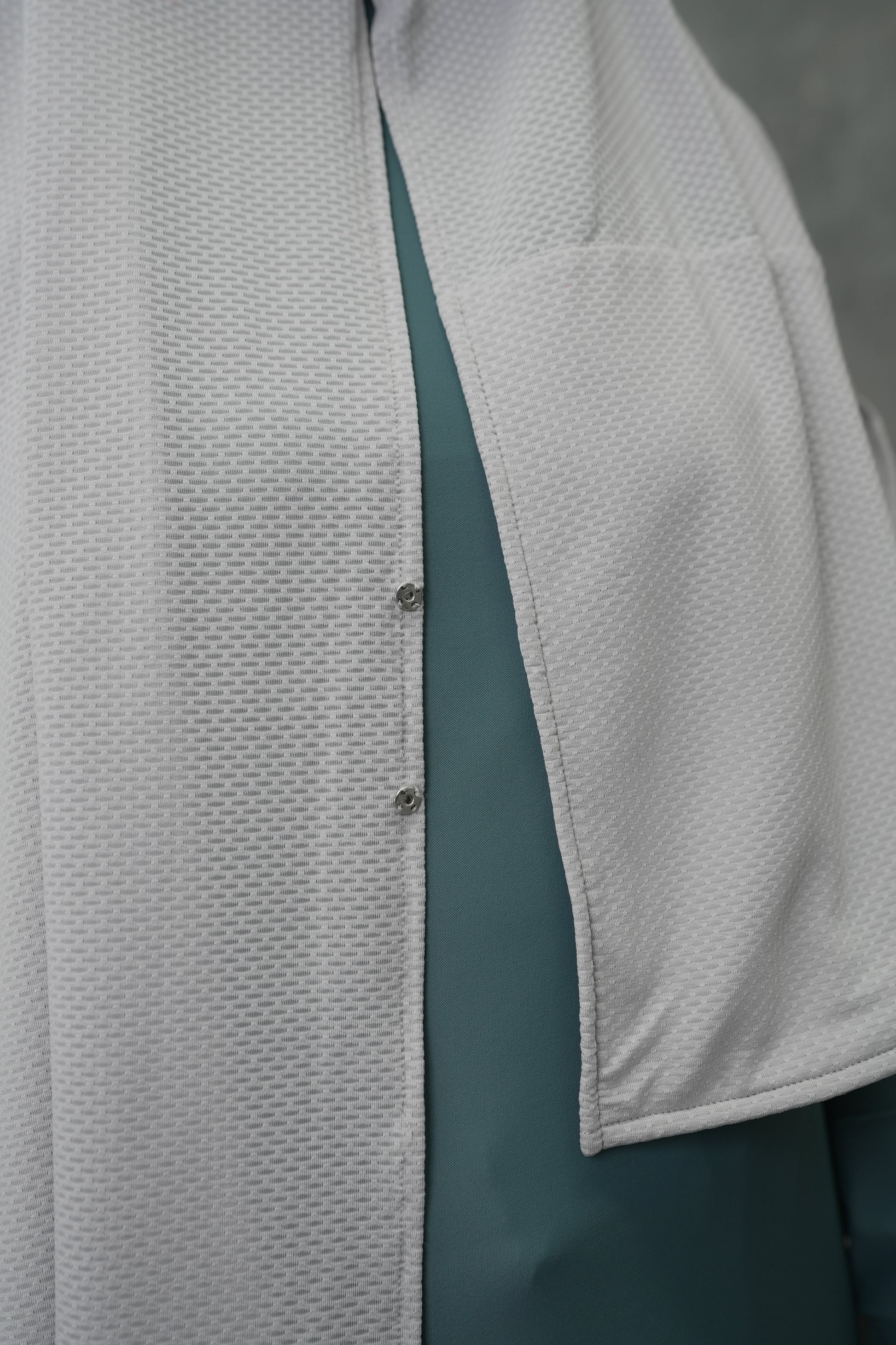 It also features extra button clips that can be locked into place near the neck for a looser wrap-around look, without the hassle of pins.